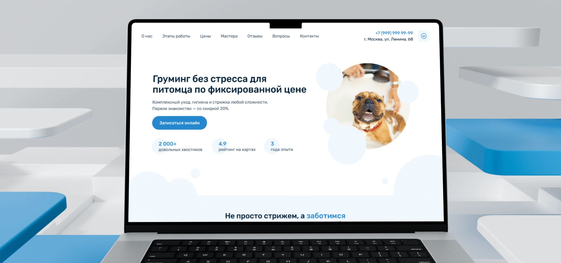 Задача: Создать продающий и при этом успокаивающий лендинг для груминг-салона, который закроет главные страхи владельцев животных и превратит сомневающихся посетителей в записавшихся клиентов.